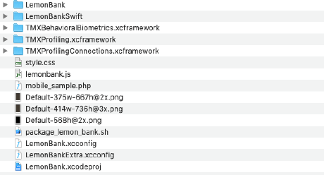 Copy the following files to your application directory as shown in the image below: TMXProfiling.xcframework, and TMXProfilingConnections.xcframework. TMXBehavioralBiometrics is not required for this integration.