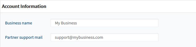 Set your business name and email address as shown below: